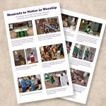 “Moments to Notice in Worship” is a picture guide that helps children and families follow along in the service. With photos and simple captions, it invites kids to notice what’s happening, wonder about the meaning, and join in the prayers, songs, and holy meal of our worship together.